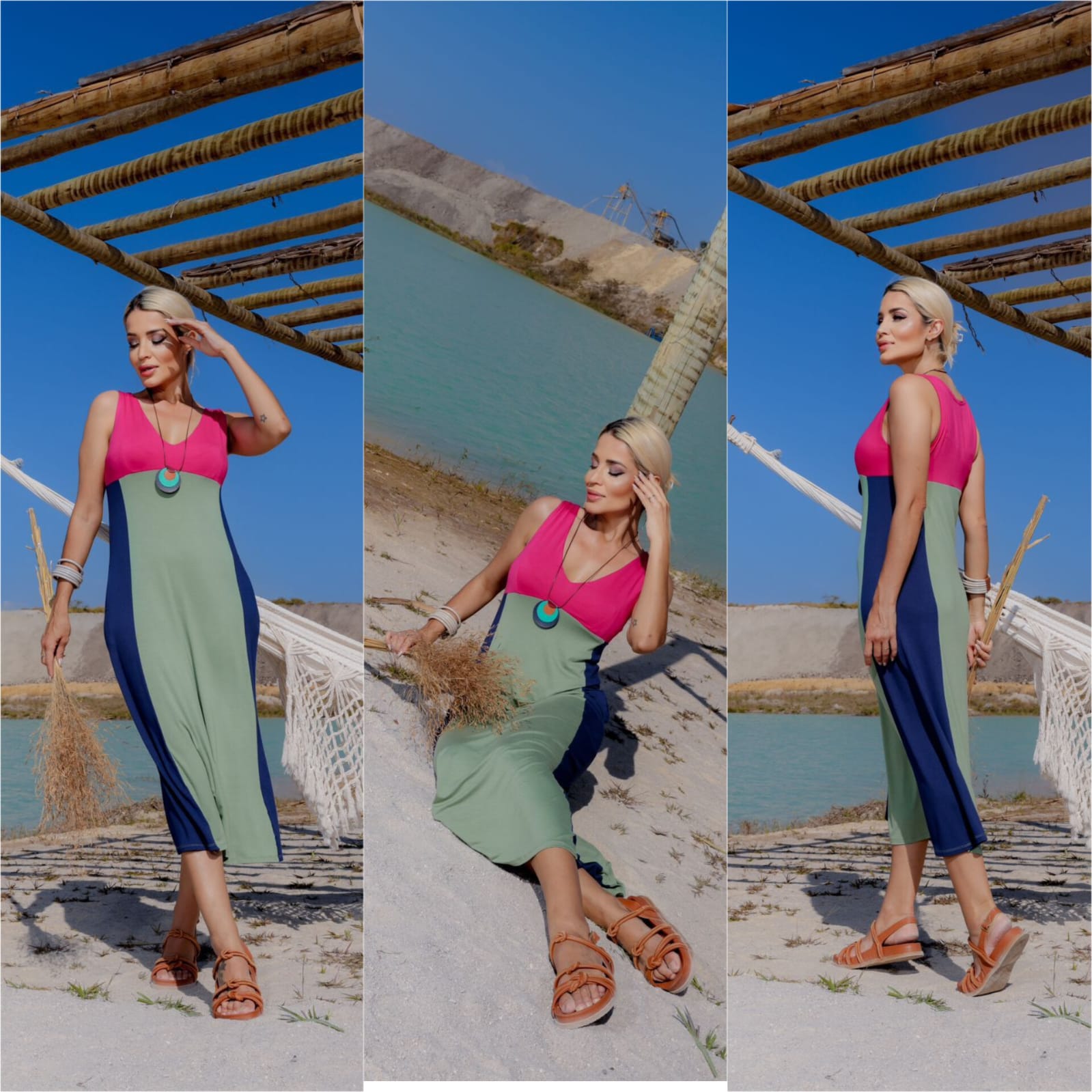 Vestido de viscolycra midi tricolor. Tamanho unico que veste até um 42.