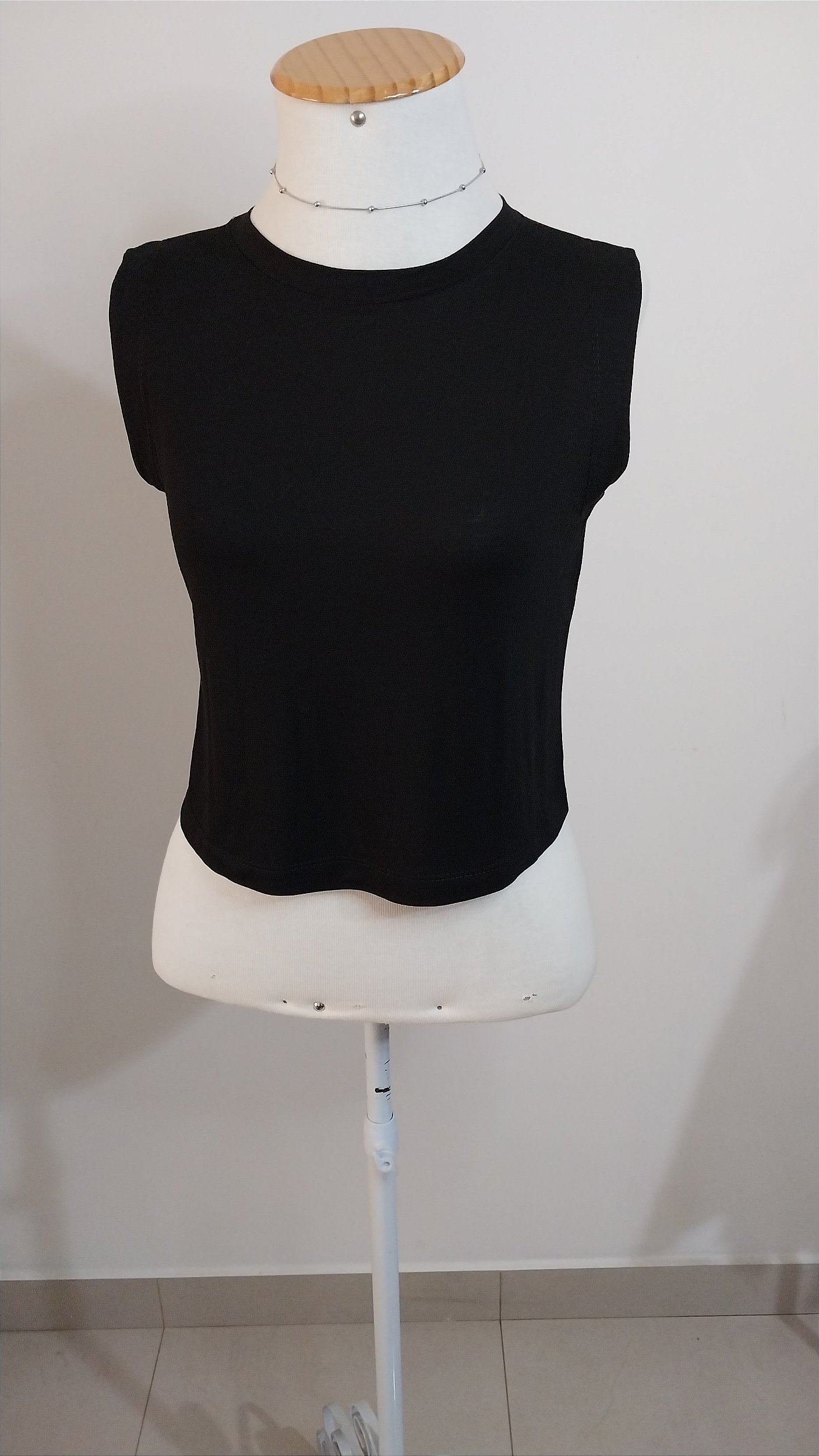 Blusa crooped de viscolycra. Tamanho M. Cores branco e preto