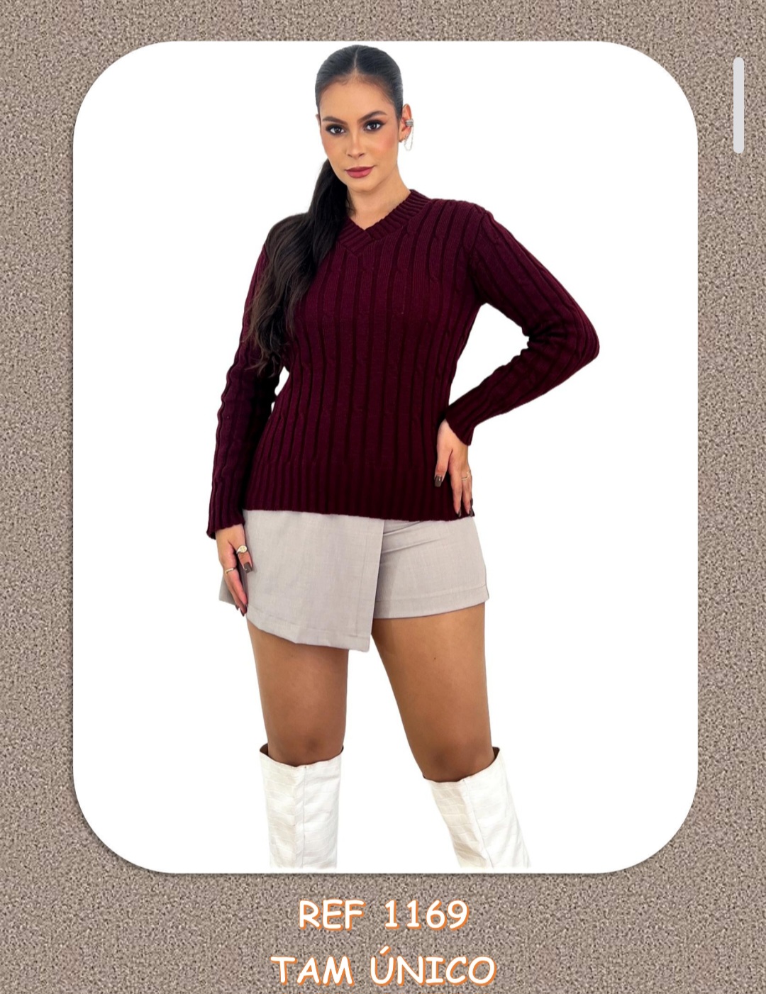 Blusa dec V de trivot de tranças 100%acrílico. Tamanho único. Cores bordô e vinho