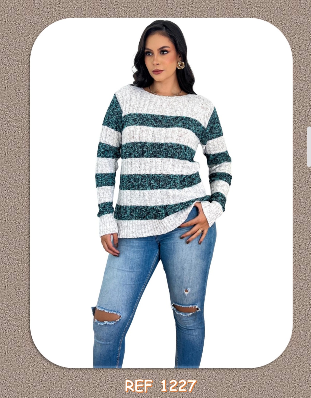 Blusa fio mousse flamê 75%acrílico 25%poliamida. Tamanho único. Cor verde/off