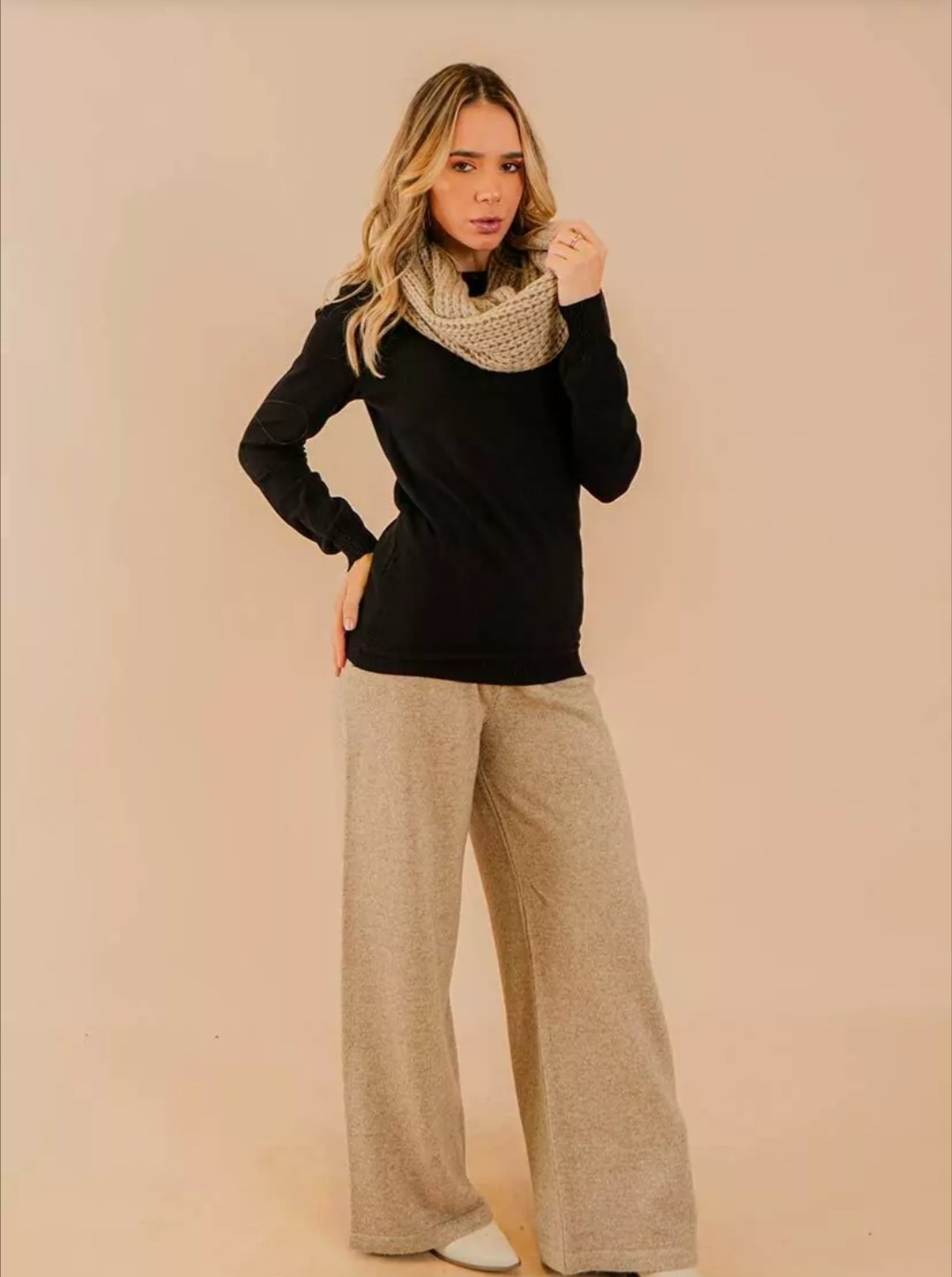 Calça de lã 40%poliamida 30%acrílico 30%viscose. Tamanho único que veste até um 44. Cor bege