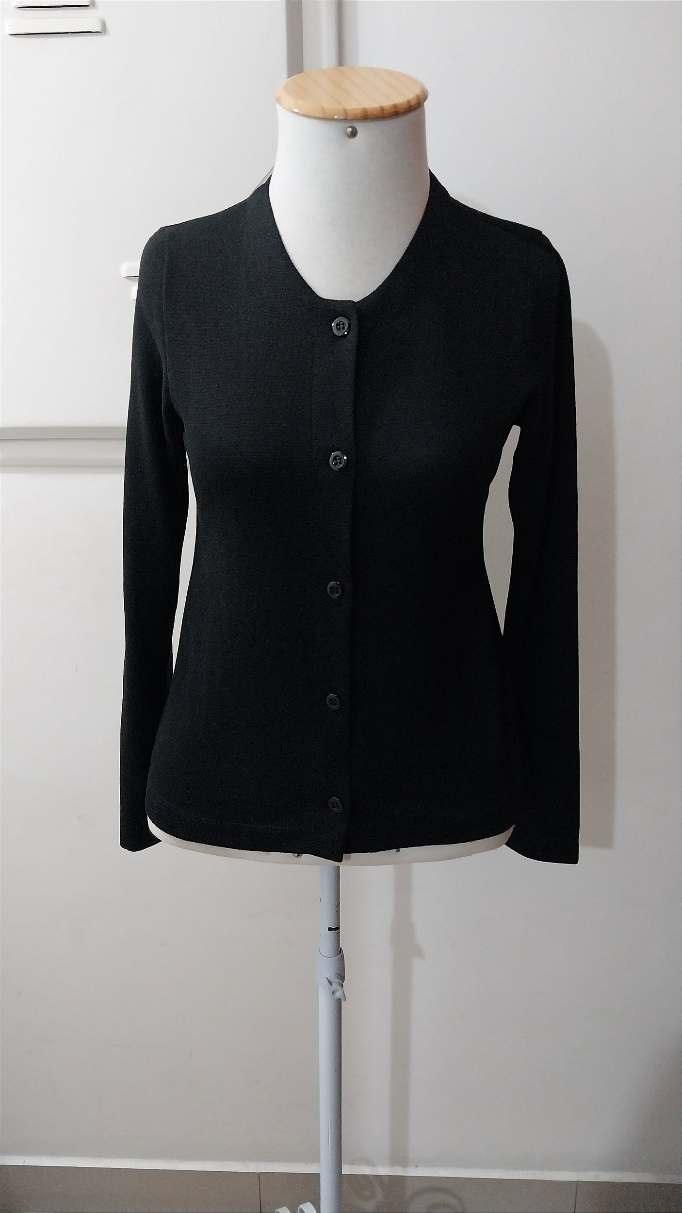 Casaco básico de malha 95%poliéster 5% elastano. Tamanho M. Cor preto