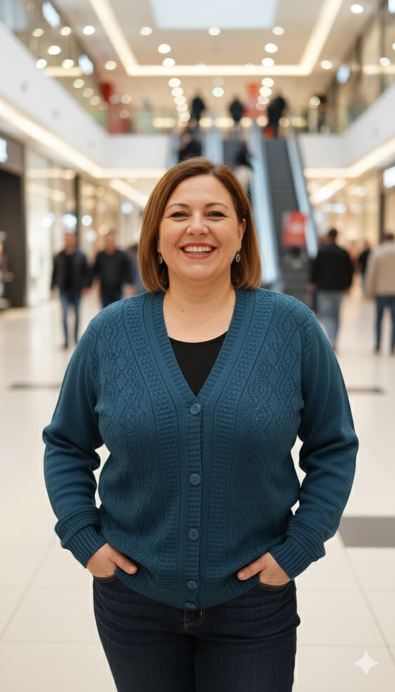 Casaco de tricot 100%acrílico ponto trabalhado. Tamanho GG. Cor jeans