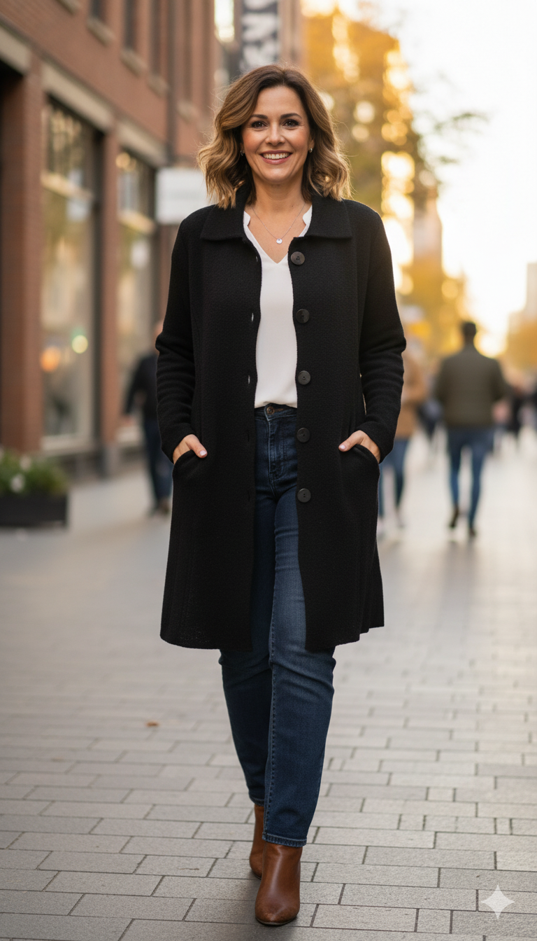 Casaco fio mousse duplo com botões. Tamanho único que veste até um 42. Cor preto