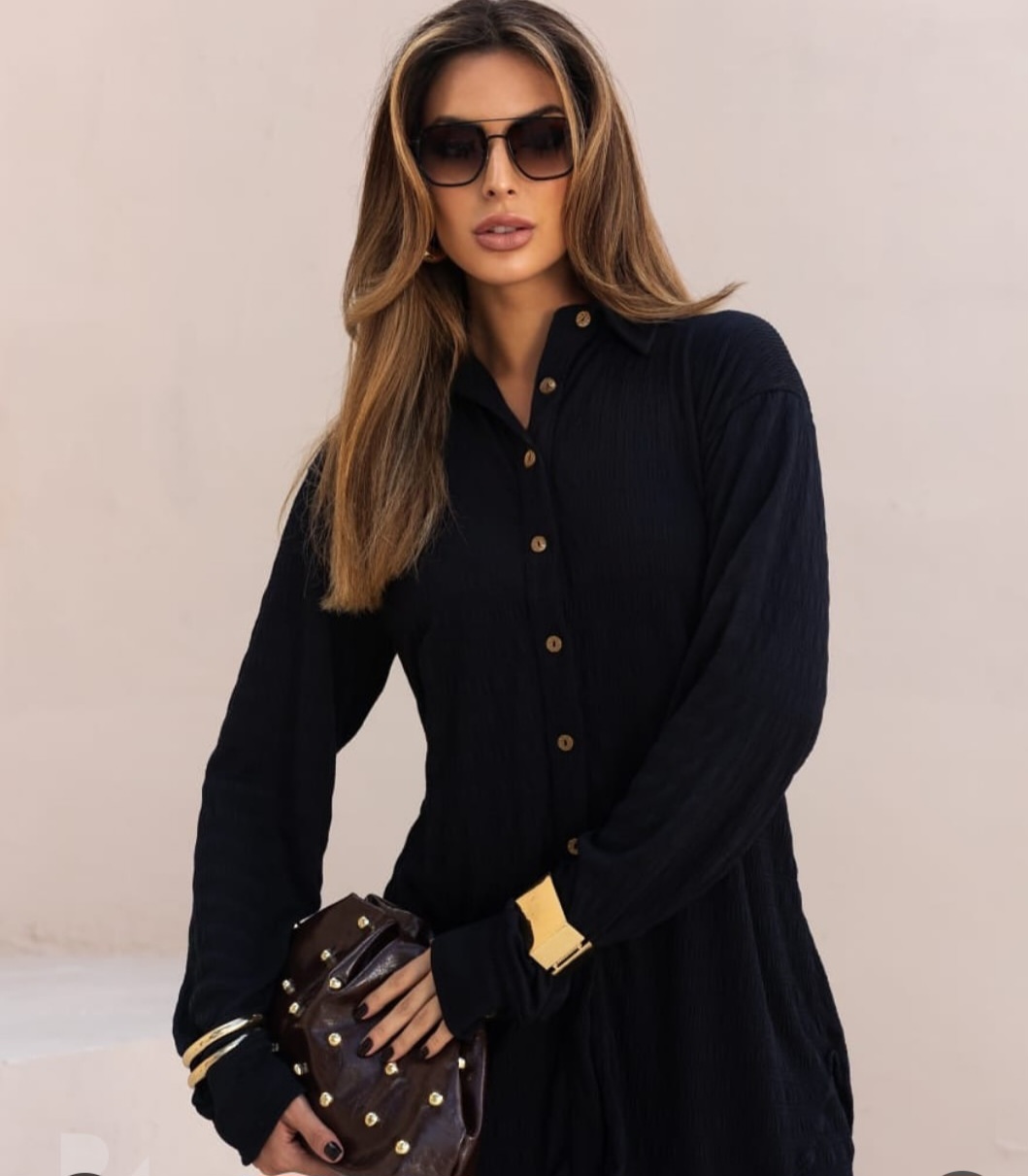 Conjunto Gotemberg de calça e camisa. Tamanho único que veste até um 46. Cor preto