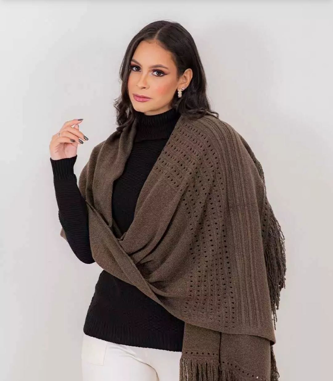 Echarpe de fio mousse. Cores marrom e bege