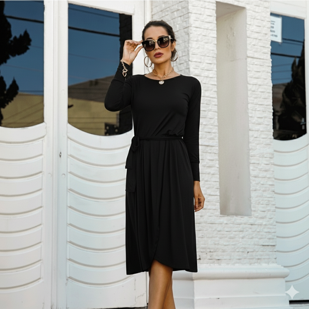 Vestido viscolycra de manga longa, tamanho único. Veste até  um 42