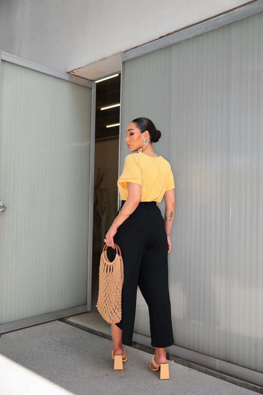 Pantacourt de viscolycra transpassado.Tamanho único que veste até um 42.