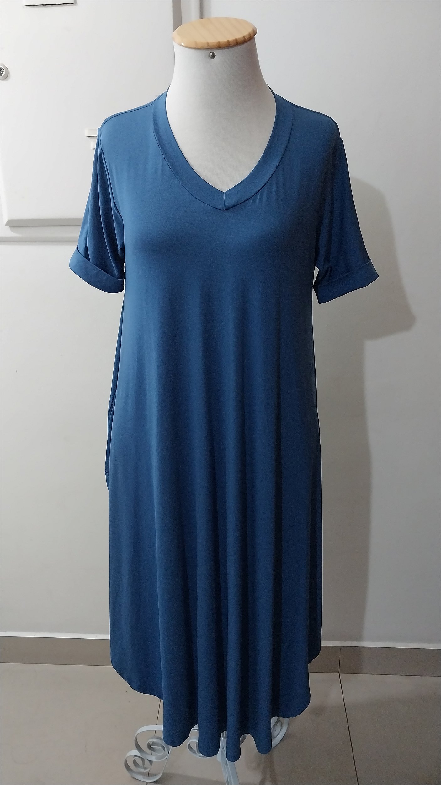 Vestido midi viscolycra com bolsos. Tamanho único veste até um 46.