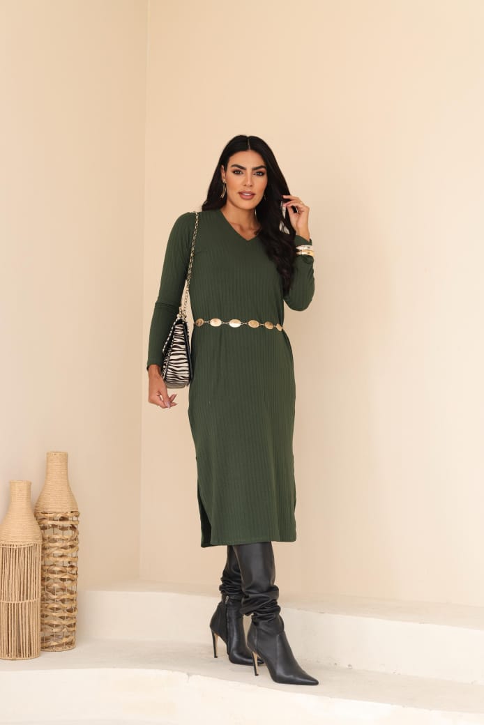 Vestido canelado com elastano e bolsos. Tamanho único que veste até um 42.