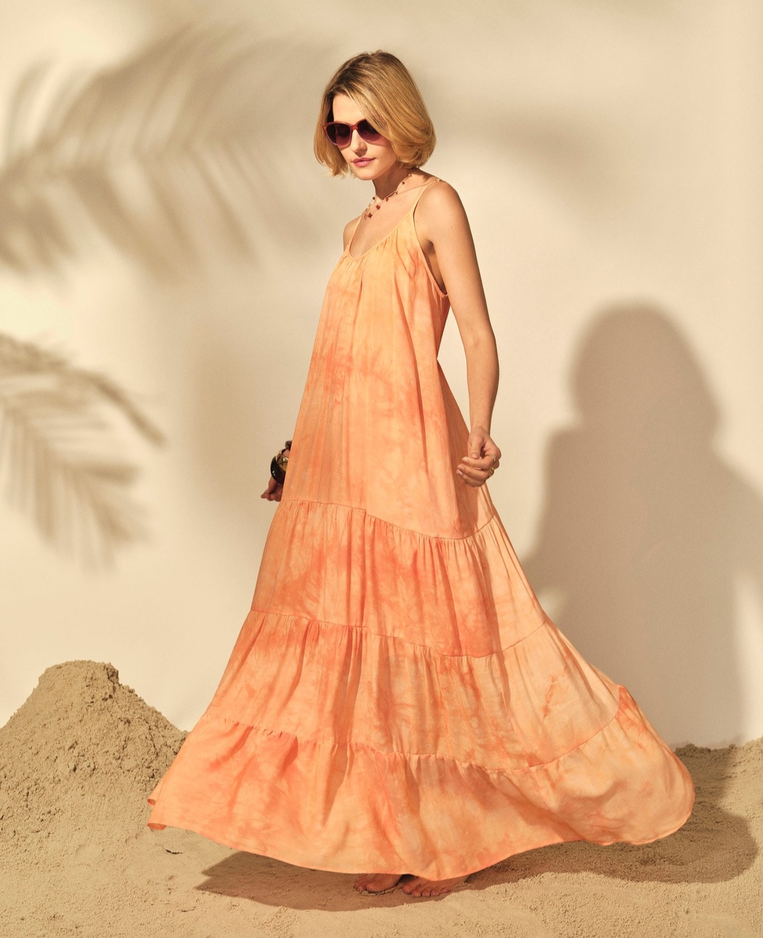 Vestido de viscose premium tie dye laranja com bolsos forrado. Tamanho P que veste até um 44