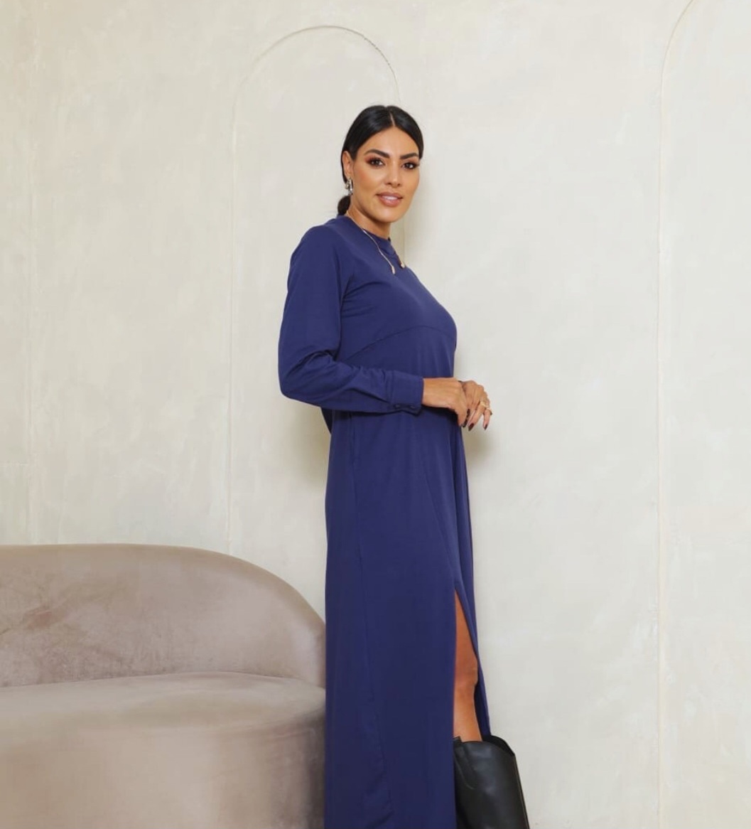Vestido longo de algodão com elastano. Tamanho único que veste até um 44. Cor marimho. Possui bolsos