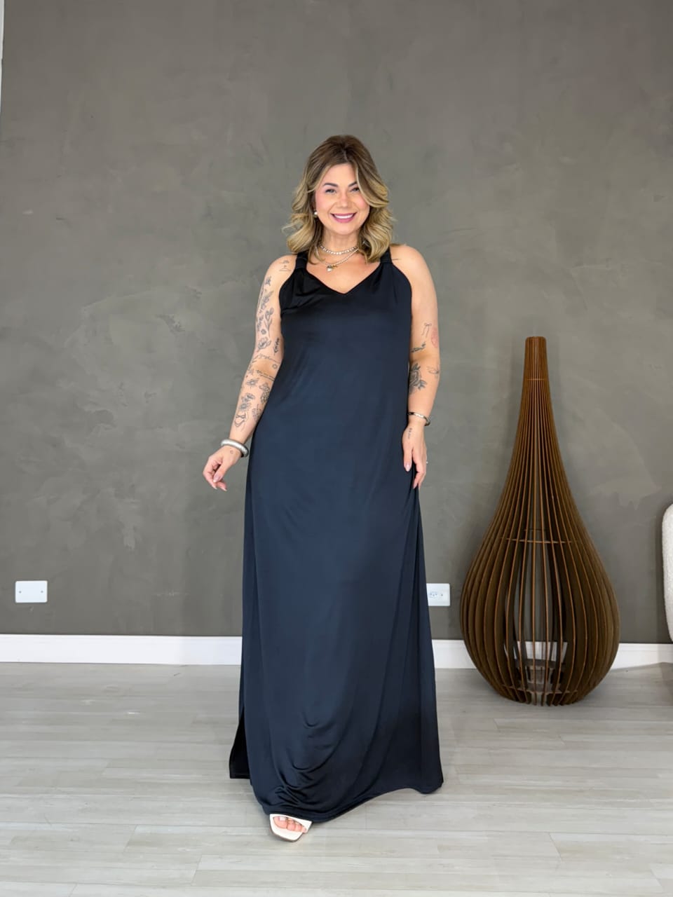 Vestido de viscolycra rayon. Tamanho único que veste até um 46. Cor marinho